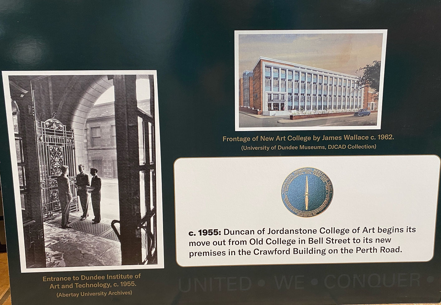 The seventh plaque in the Commando Memorial Heritage Trail was formally handed over to Dundee University ahead of the scheduled unveiling on the 10th of July 2024. Scott Sutherland entered the doors of the Crawford Building on the Perth Road during his time as Head of Sculpture. The plaque will be positioned on the brick screen wall shown in the photograph which is directly in front of the Crawford Building.